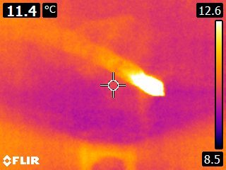 We have recently taken delivery of a FLIR E6 thermal imaging camera and are currently trialling it for use in bat surveys, both in roosts and for emergence surveys. Here are some images of lesser horseshoe bats roosting and in flight.